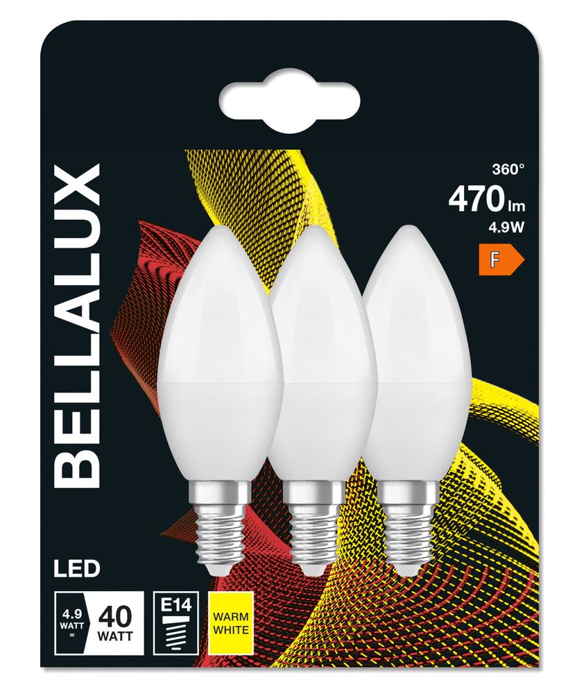 Bellalux LED Kerze B matt 4,9-40W/827 warmweiß 470lm E14 220-240V 3er Blister