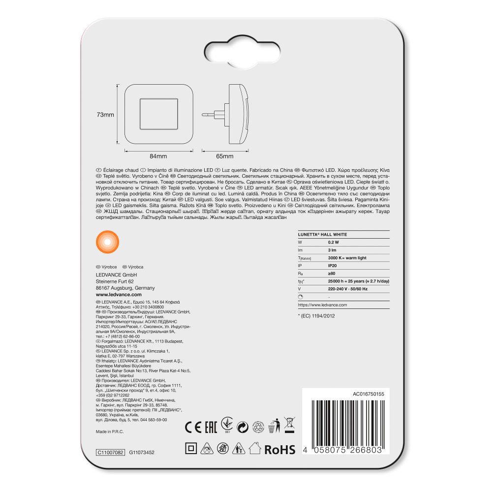 LEDVANCE LED Steckdosenleuchte Lunetta Hall 0,25W/830 3lm warmweiß nicht dimmbar weiß IP20