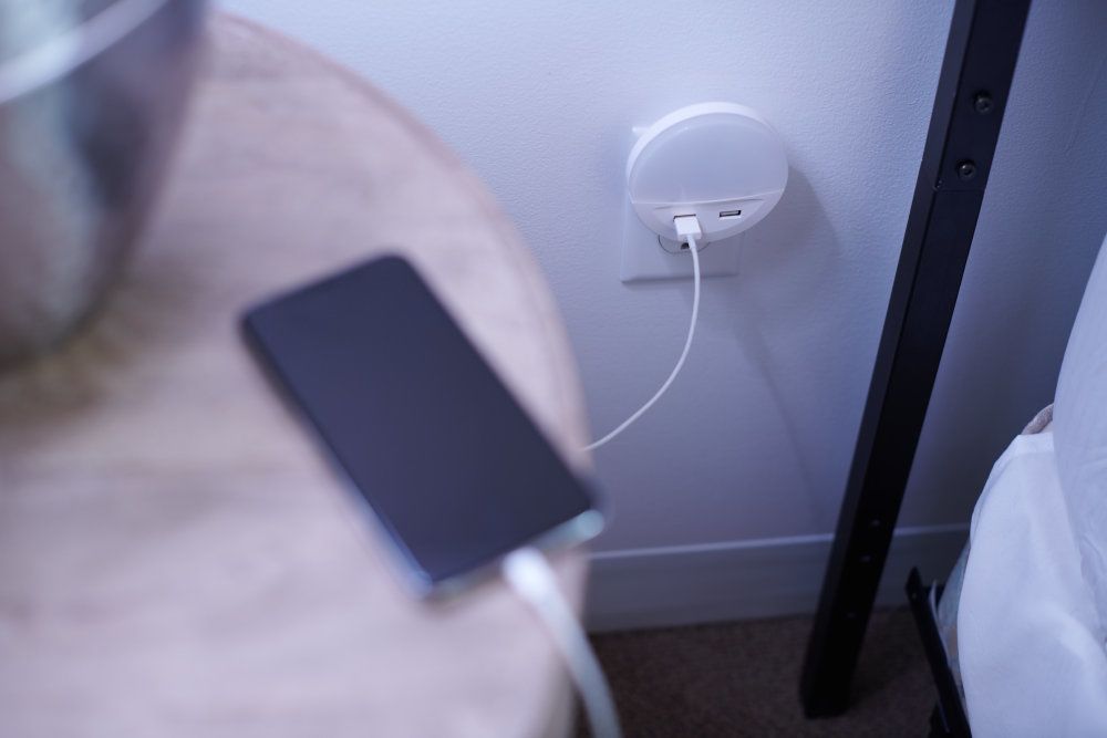 - Open text field 1: Anwendungsgebiete<br> – Schlafzimmer<br> – Kinderschlafzimmer<br> – Nur für Innenraumbeleuchtung<br><br> Produktvorteile<br> – Automatisches Ein- und Ausschalten abhängig vom Tageslicht<br> – Plug-and-Play durch EU-Stecker<br> – Energieeffizient durch LED-Technik<br><br> Produkteigenschaften<br> – Micro-USB-Buchse mit Ladefunktion<br> – Integrierte Handyablage-Möglichkeit auf der Rückseite<br> – Integrierter Tag-/Nacht-Sensor