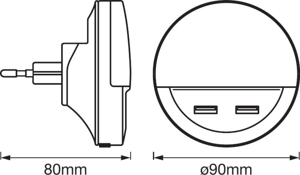 LEDVANCE LED Steckdosenleuchte Lunetta inkl USB 1,8W/830 10lm warmweiß nicht dimmbar weiß IP20