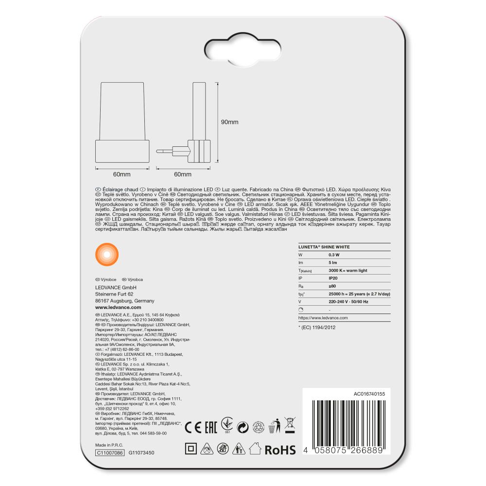 LEDVANCE LED Steckdosenleuchte Lunetta Shine 0,28W/830 5lm warmweiß nicht dimmbar weiß IP20