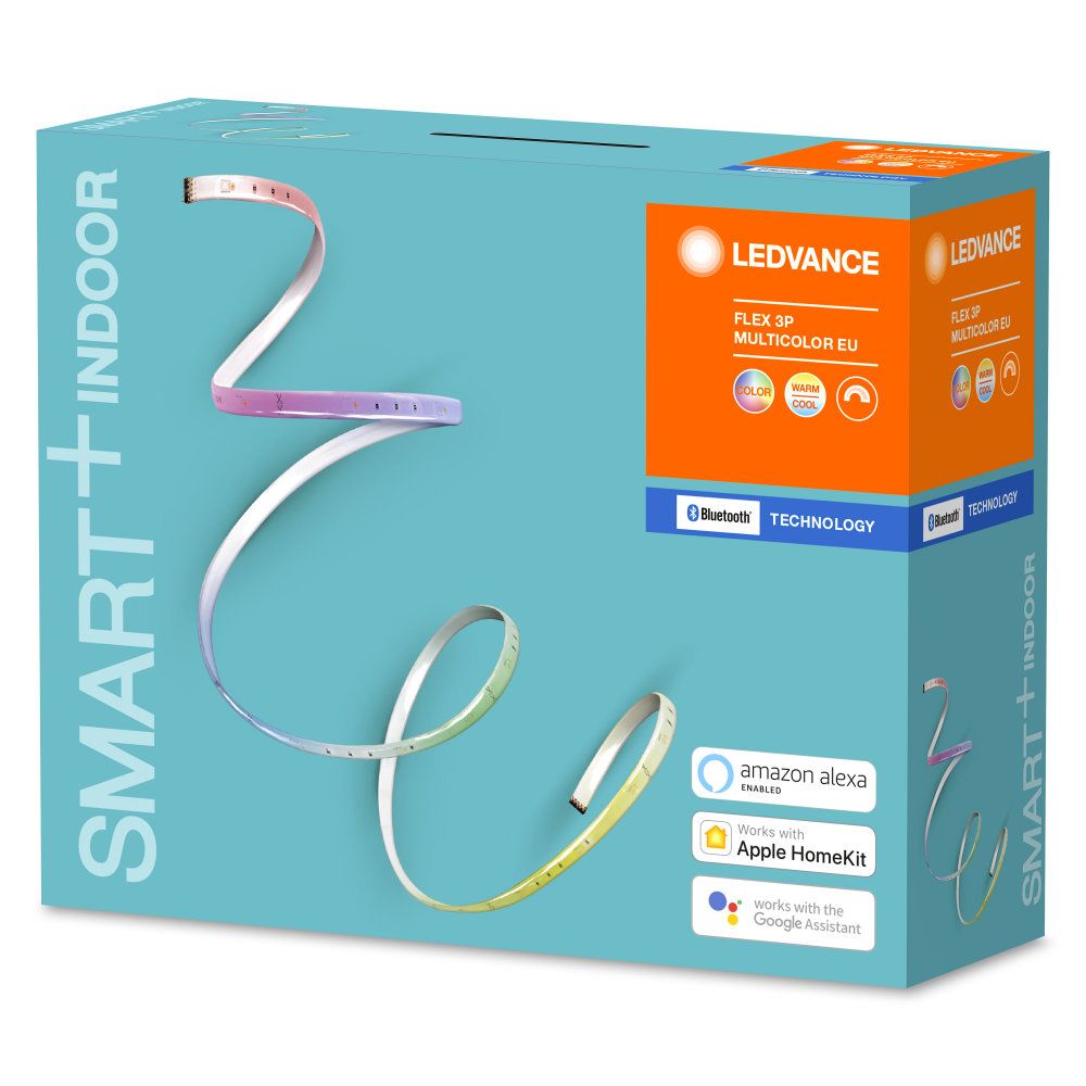 - Open text field 1: <p><strong>Produktvorteile</strong></p> <ul class="simplelist"> <li>Teilbar in drei Teile und erweiterbar mit SMART+ FLEX 2P EXTENSION</li> <li>Einfache Installation und Nutzung</li> </ul> <p><strong>Anwendungsgebiete</strong></p> <ul class="simplelist"> <li>Allgemeinbeleuchtung</li> <li>Wohnräume</li> </ul> <p><strong>Produkteigenschaften</strong></p> <ul class="simplelist"> <li>Flexibles, selbstklebendes RGBW-Band mit intelligenter kabelloser Steuerungstechnik</li> <li>Steuerung über LEDVANCE SMART + App (ab Android 6.0) oder Apple Home App (ab iOS 10)</li> <li>Für vollen Funktionsumfang bei Steuerung über Apple Home App Verbindung mit Apple TV (ab tvOS 10) oder iPad (ab iOS 10) notwendig</li> <li>RGB-Farbsteuerung, ca. 16 Mio. Farbmöglichkeiten einstellbar</li> <li>Farbtemperatur über Tunable White einstellbar: 2.000…6.500 K</li> <li>Dimmbar</li> <li>Netzwerkprotokoll: Bluetooth</li> <li>Lebensdauer: bis zu 20.000 h</li> </ul> <p><strong>Technische Ausstattung</strong></p> <ul class="simplelist"> <li>Für Steuerung über LEDVANCE SMART + App Android-Smartphone (ab Android 6.0) erforderlich</li> <li>Für Steuerung über Apple Home App iPhone (ab iOS 10), iPad (ab iOS 10), Apple TV (ab tvOS 10) oder Apple Watch (ab watchOS 2) erforderlich</li> <li>Netzteil enthalten</li> </ul>