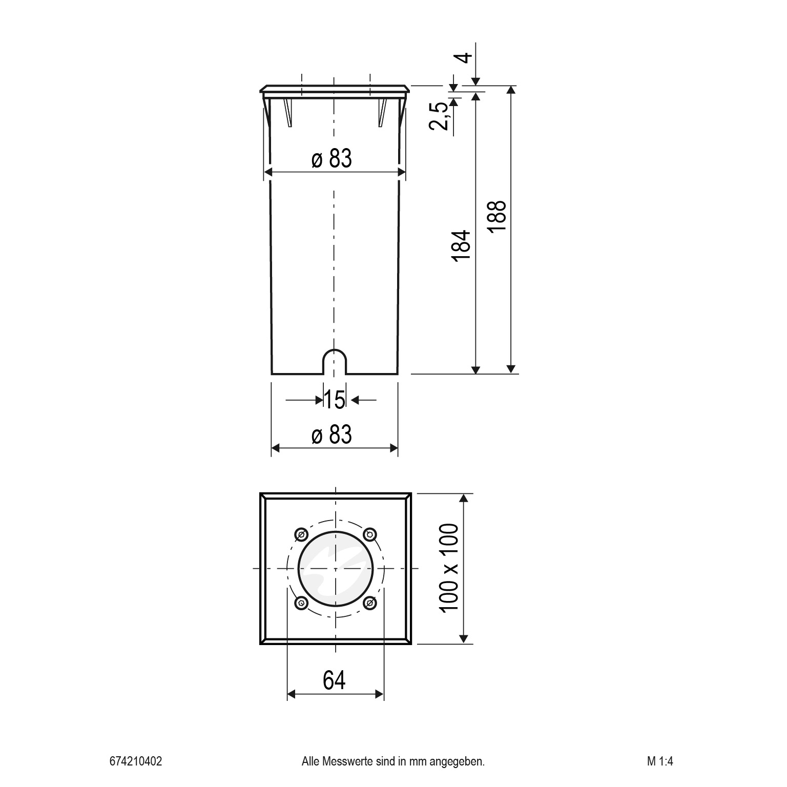 "EVN Bodeneinbauleuchte Edelstahl Optik starr viereckig 98x98x159mm 4,6W 3000K 370lm 21-40° 230V IP66"