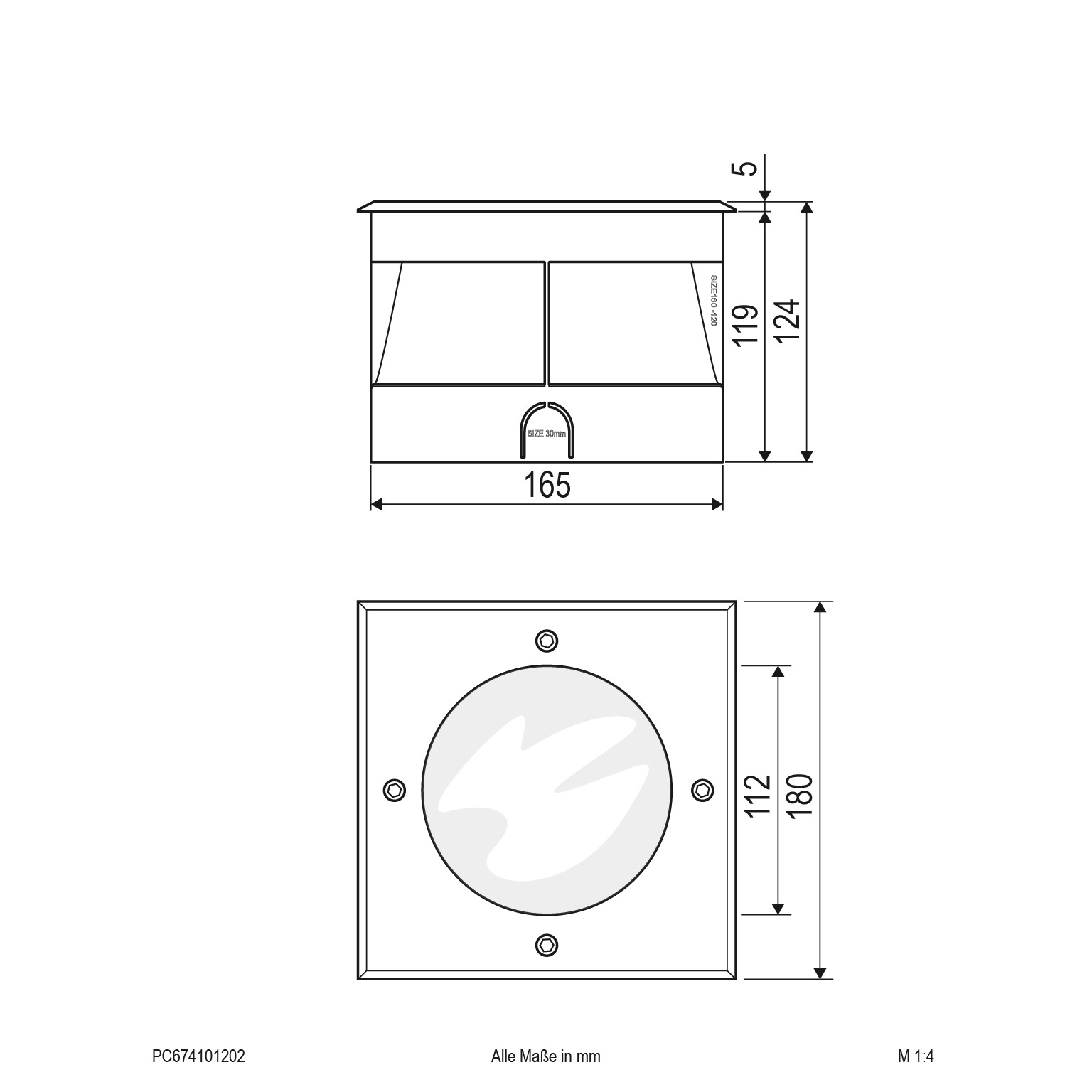 EVN LED Bodeneinbauleuchte Edelstahl Optik viereckig 180x180x125mm 12W 3000K 1100lm 41-80° 110-240V IP67