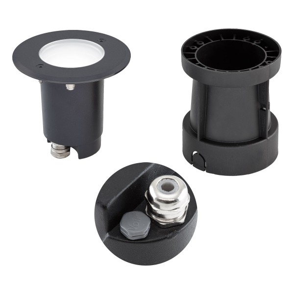 EVN LED Bodeneinbauleuchte mit Entlüftungsventil anthrazit schwenkbar rund 120x110mm 4,6W 4000K 390lm 21-40° 230V IP67
