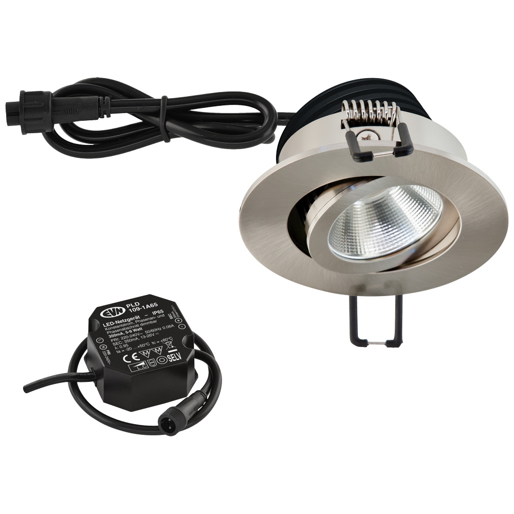 EVN Power-LED Leuchte inkl.Netzgerät Edelstahl Optik schwenkbar rund 83x48,5mm 8,4W 4000K 1060lm 21-40° 220-240V IP65