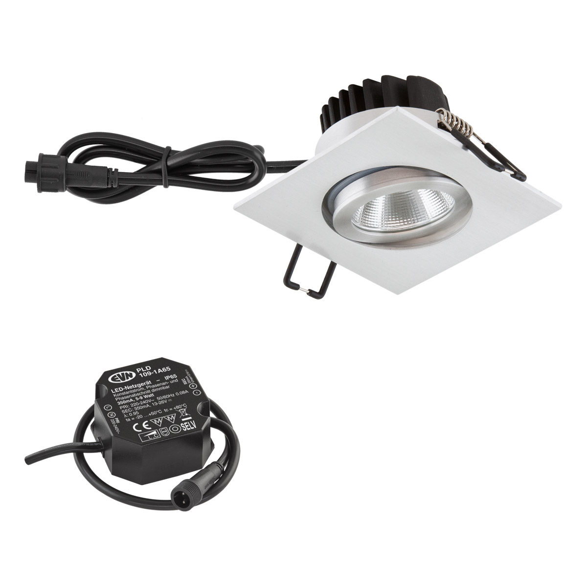 "EVN Power-LED Leuchte Aluminium poliert schwenkbar viereckig 83x83x48,5mm 8,4W 3000K 1010lm 21-40° 220-240V IP65"