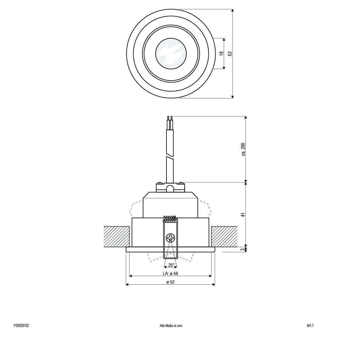 Die Leistung der Leuchten beläuft sich dabei auf 3 Watt. Mit seinen 170 Lumen weist dieser Artikel einen geringen Lichtstrom auf, sodass Sie sich nicht um die Lichtqualität sorgen müssen. Dank 3.000 Kelvin liefert diese Leuchte ein weißes Licht. Angenehmes, behagliches und wohnliches Ausleuchten ist mit dieser Farbtemperatur verbunden. Geeignete Einsatzmöglichkeiten sind zum Beispiel Einbauten sowie Decken.