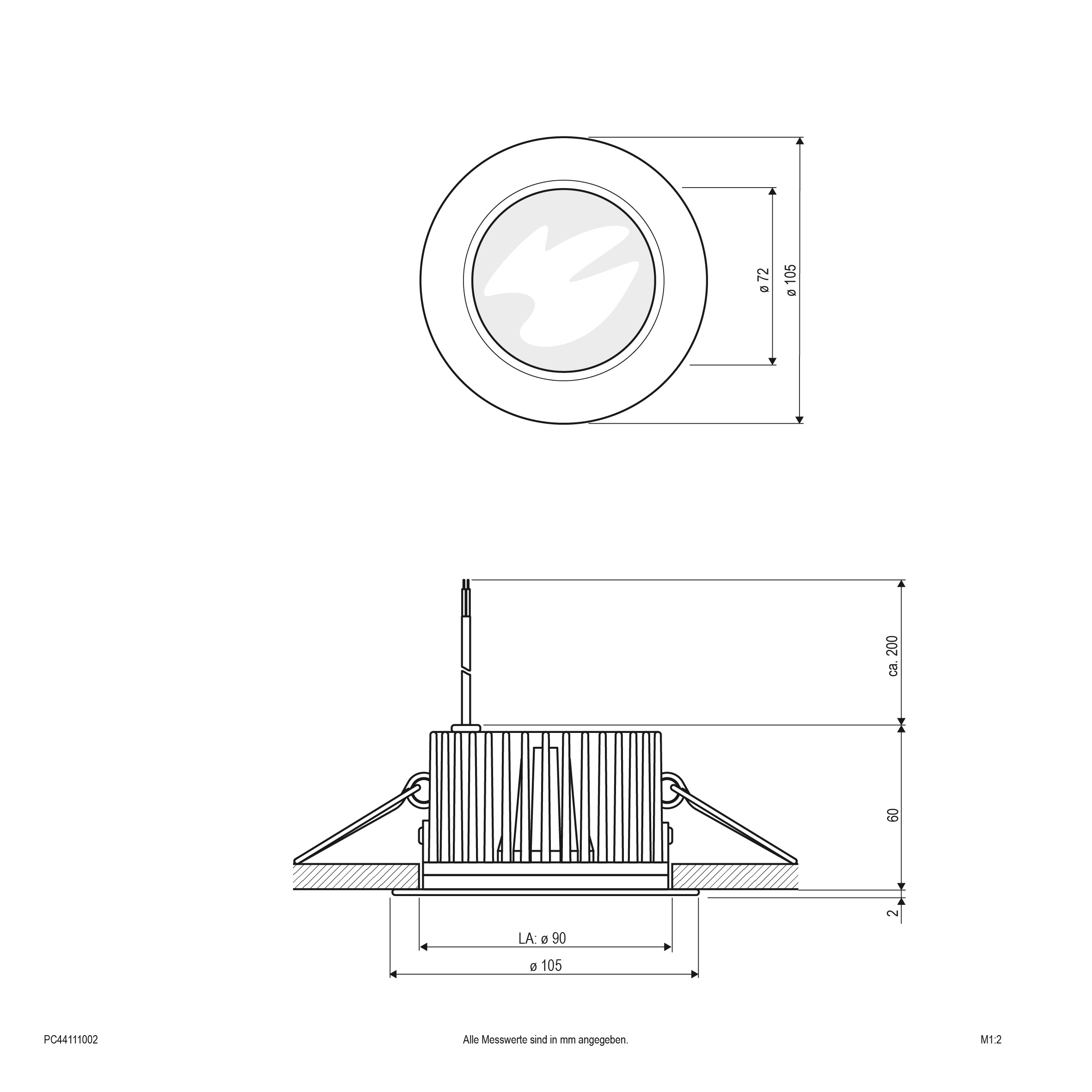 Bei diesen Leuchten beläuft sich die Leistung auf 11 Watt. Für besonders ideale Lichtverhältnisse sorgt zudem ein normaler Lichtstrom von 1.130 Lumen. Das weiße Licht wird mit einer Farbtemperatur von 3.000 Kelvin ausgestrahlt. Dadurch wird der Raum angenehm und unaufdringlich ausgeleuchtet. Verwenden Sie diesen Artikel beispielsweise für den Einbau sowie die Decke.