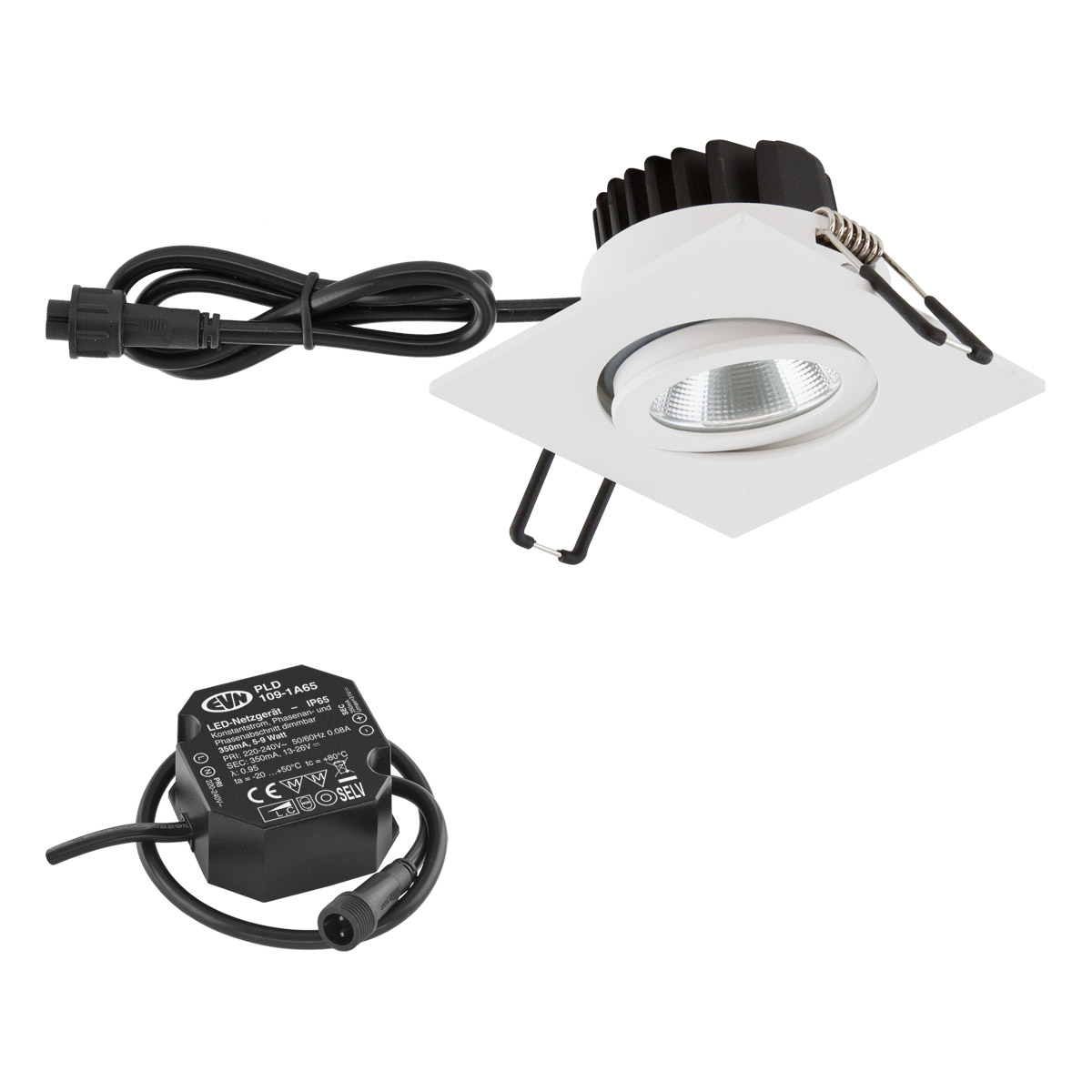 EVN Power-LED Leuchte weiß schwenkbar viereckig 83x83x48,5mm 6W 3000K 620lm 21-40° 220-240V IP65