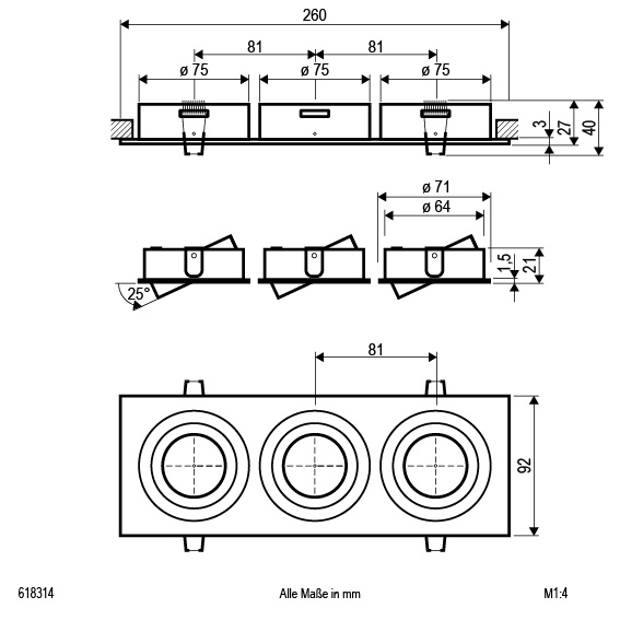 EVN Leuchte Aluminium schwenkbar rechteckig 260x90x27mm 12V IP20