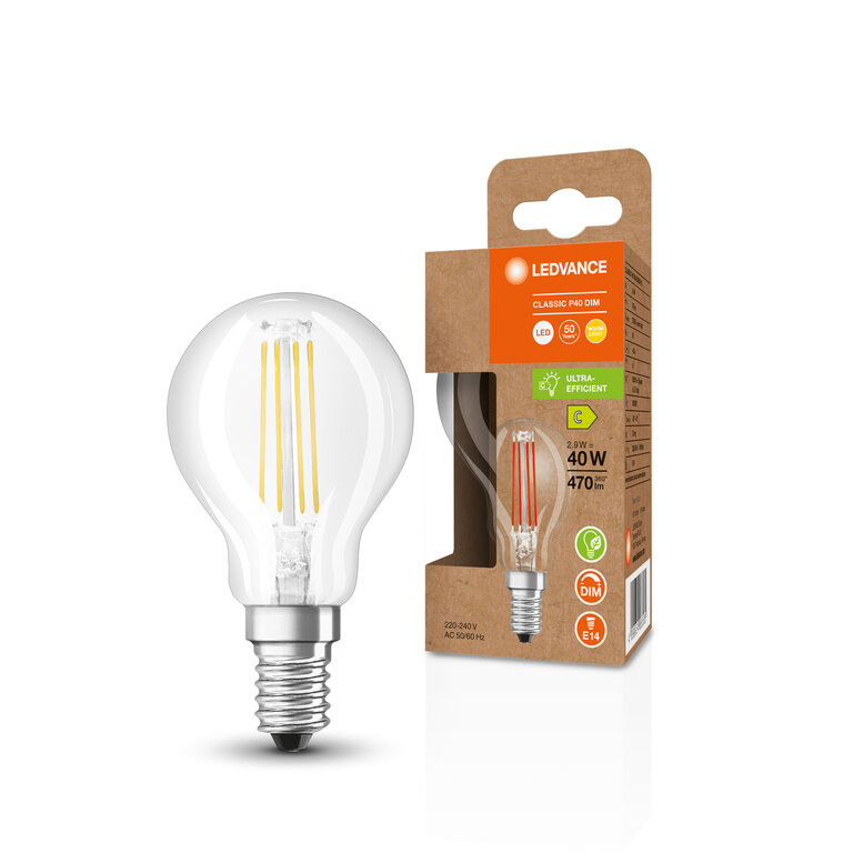 Osram / Ledvance LED Filament Tropfen P klar 300° Superior 2,9-40W/827 warmweiß 470lm E14 220-240V dimmbar