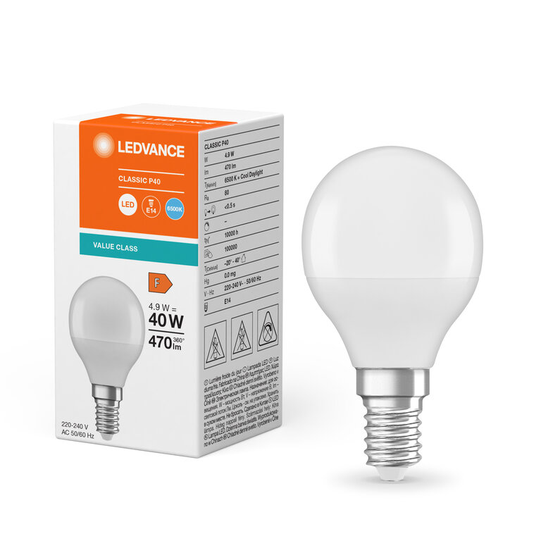 Osram / Ledvance LED Tropfen P matt 200° Value 4,9-40W/865 tageslichtweiß 470lm E14 220-240V