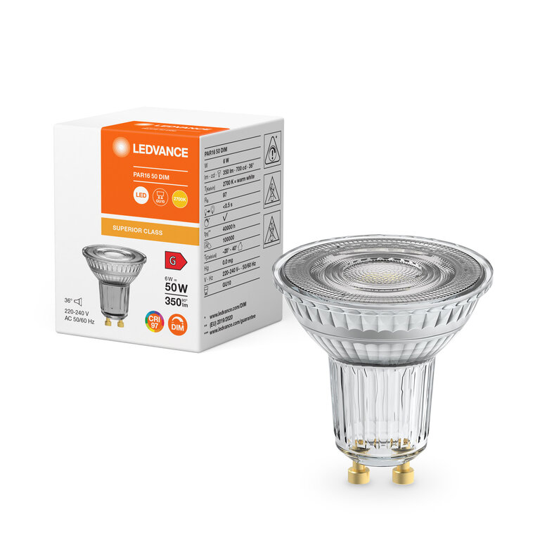 Osram / Ledvance LED Reflektor PAR16 36° Superior 6-50W/927 warmweiß 350lm GU10 220-240V dimmbar