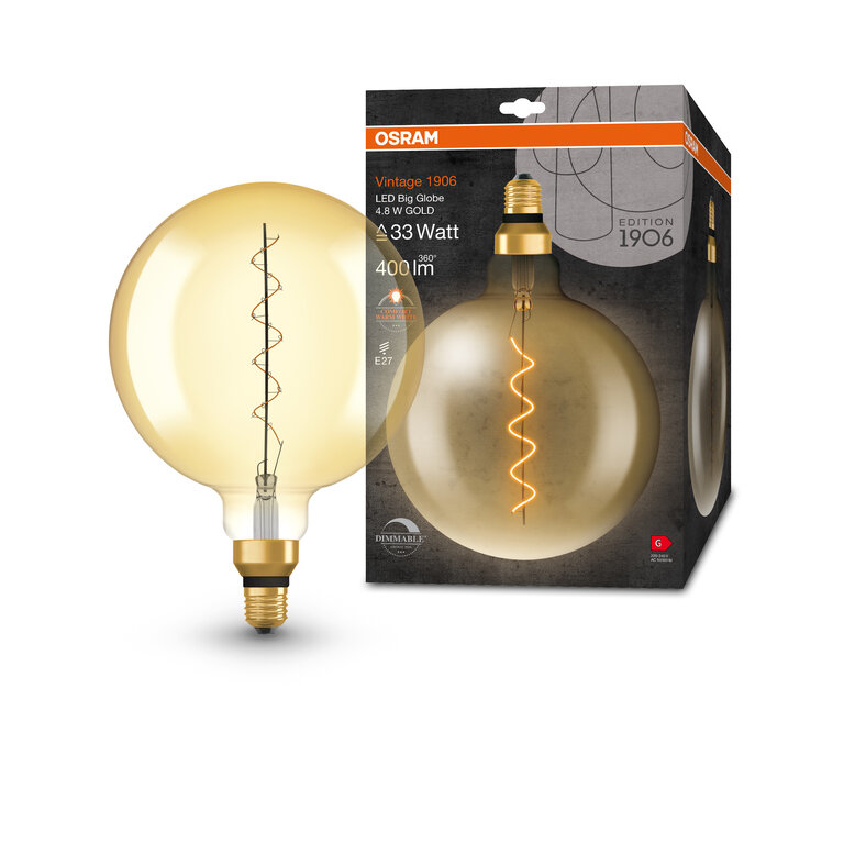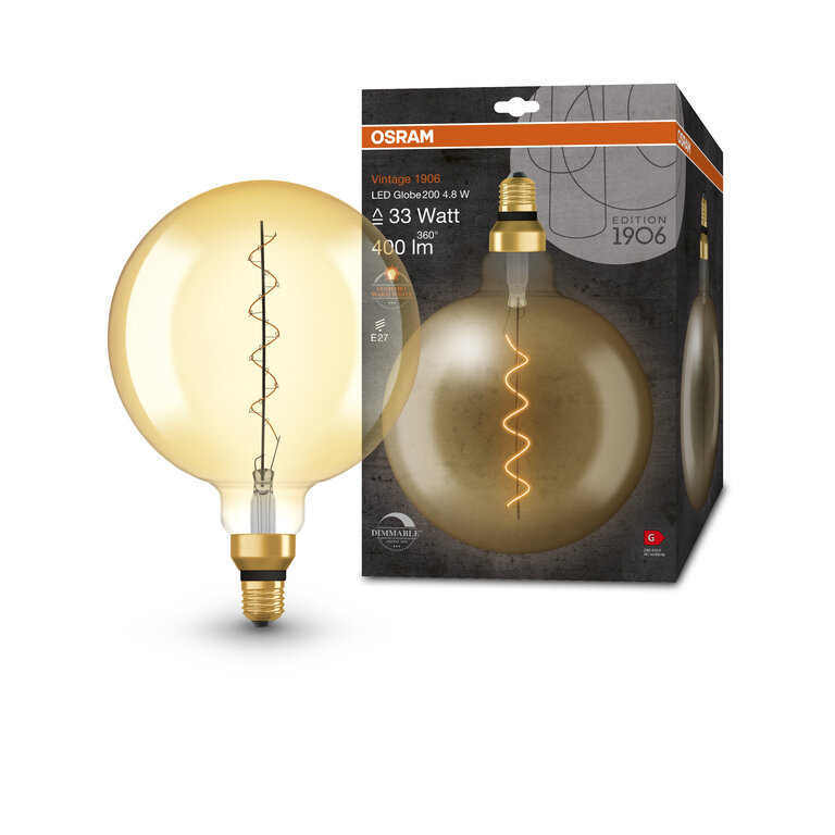 Osram / Ledvance LED Filament Vintage 1906 Globe G200 gold 320° 4,8-33W/822 extra warmweiß 400lm E27 220-240V dimmbar