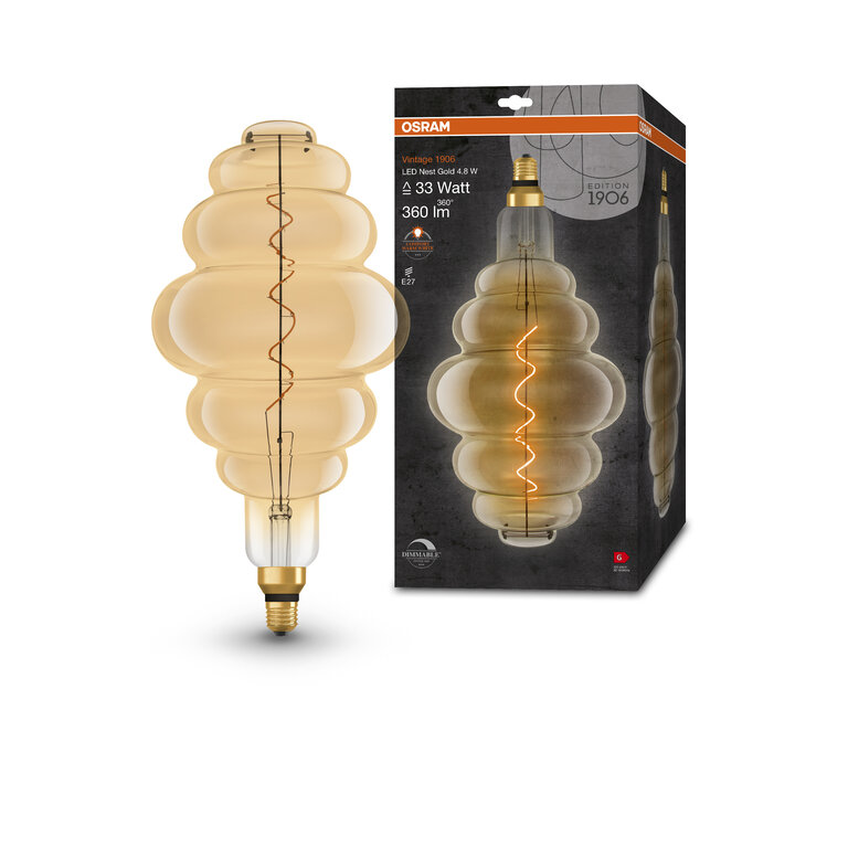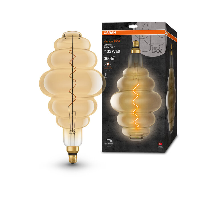 Osram / Ledvance LED Filament Vintage 1906 Nest gold 320° 4,8-33W/822 extra warmweiß 360lm E27 220-240V dimmbar