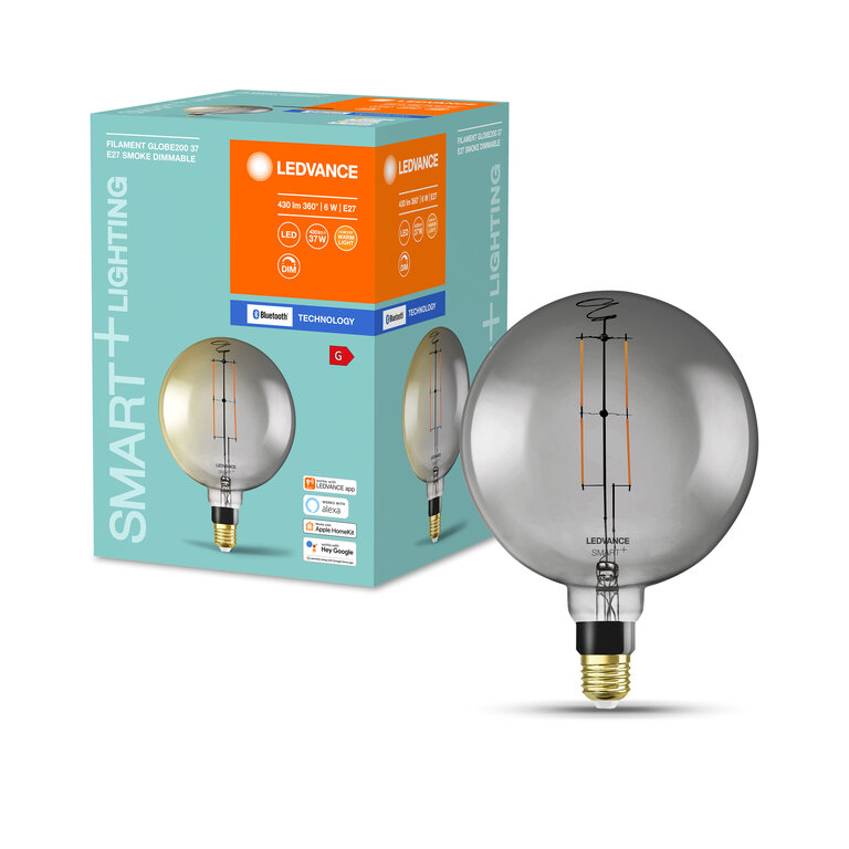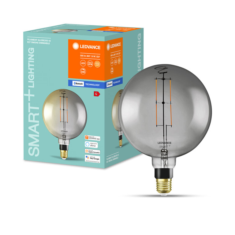 Osram / Ledvance LED Filament Bluetooth Smart+ Globe G200 rauchig 320° 6-42W/825 warmweiß 500lm E27 220-240V dimmbar