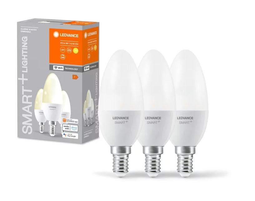 Ledvance LED WIFI Smart+ Kerze B40 matt 200° 4,9-40W/827 warmweiß 470lm E14 220-240V dimmbar 3er Pack