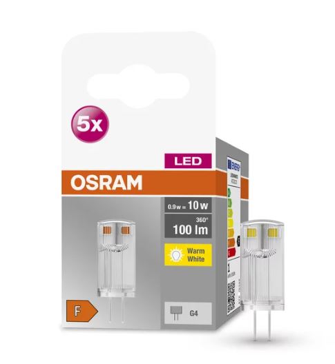 Osram LED Base 320° Pin 0,9-10W/827 warmweiß 100lm G4 12V 5er Blister