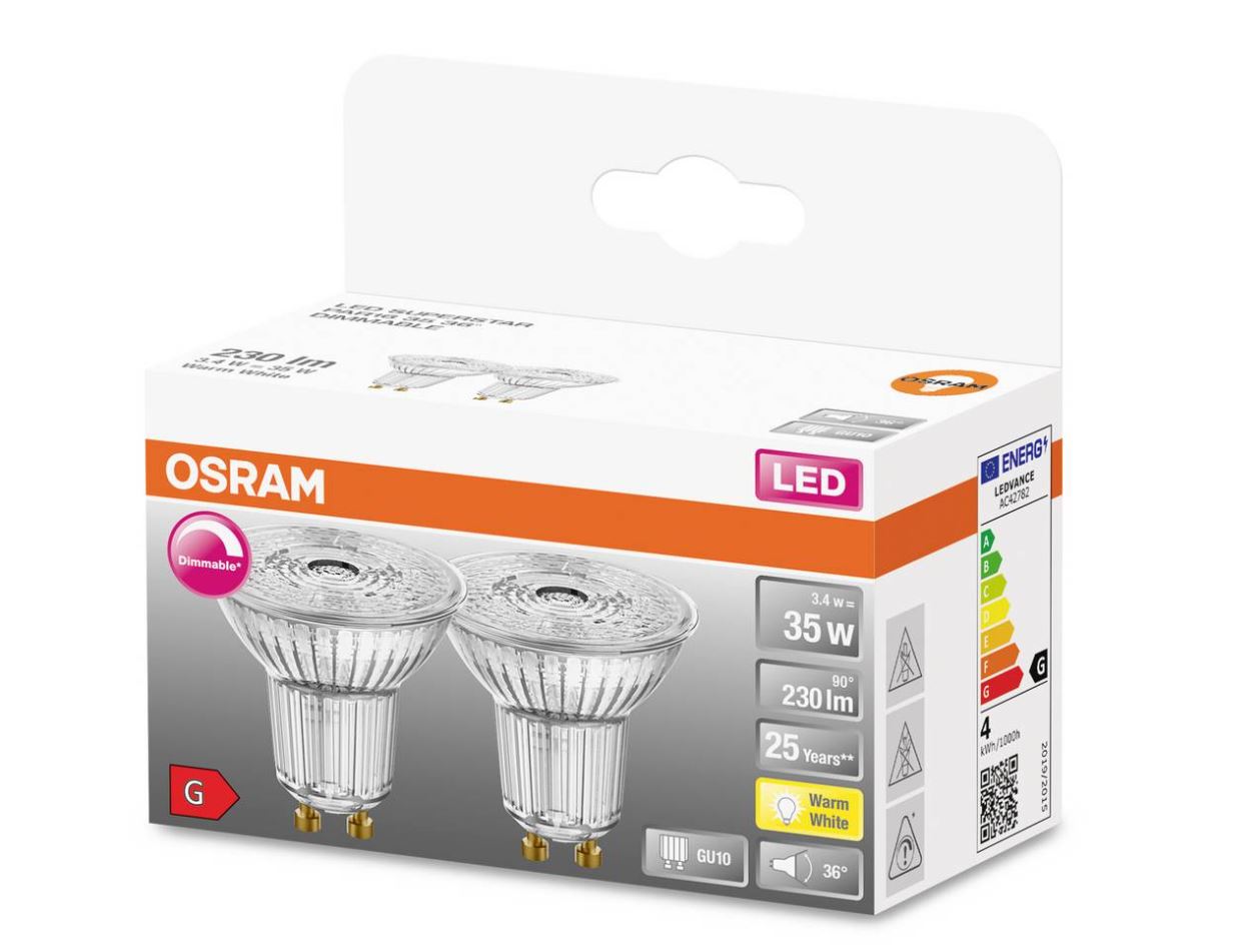 Osram LED Superstar Reflektor PAR16 36° 3,4-35W/927 warmweiß 230lm GU10 220-240V dimmbar 2er Blister
