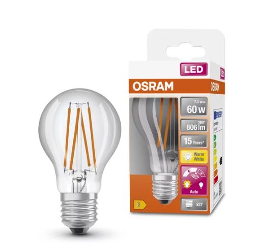 Osram LED Filament Star+ Classic A klar 320° Sensor 7,3-60W/827 warmweiß 806lm E27 220-240V