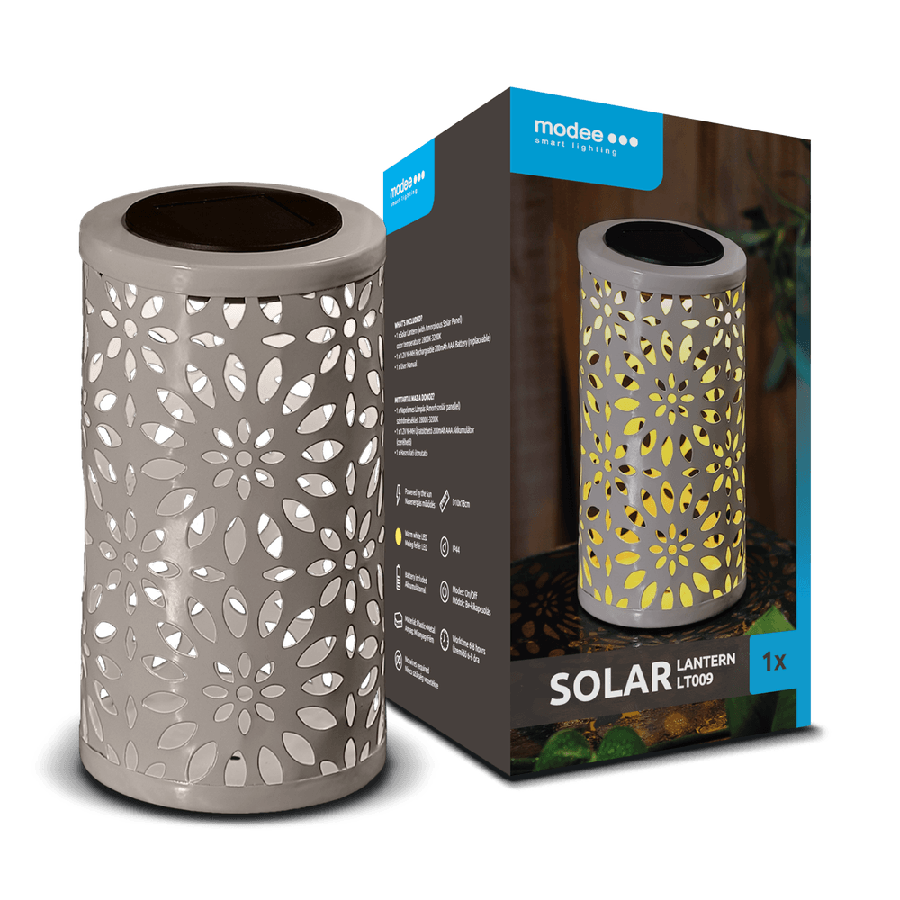 Modee Solar Larterne Leuchte LED 100x180mm Metall Kunststoff grau 2700-3200K IP44 1,2V Batterie