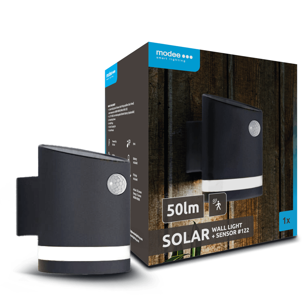 Modee Solar Wand Leuchte LED 120x95x130mm Edelstahl Kunststoff schwarz 9000K IP44 3,7V Batterie