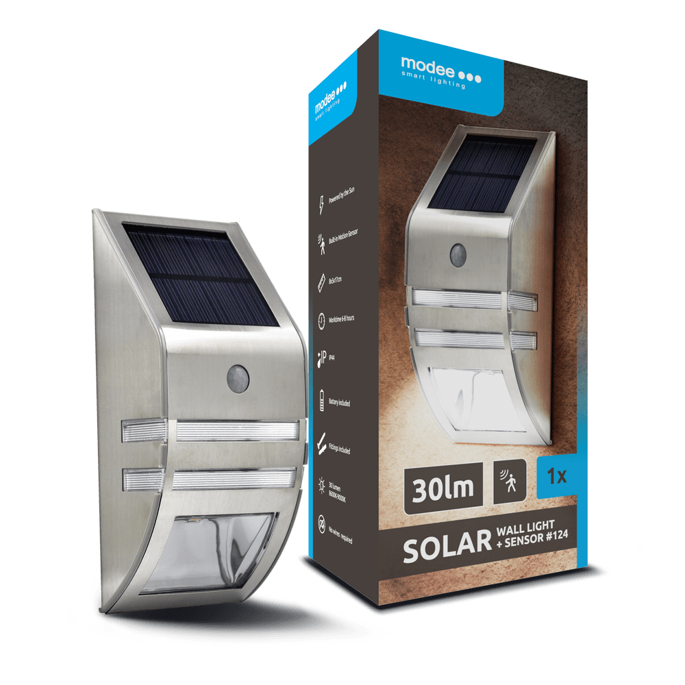 Modee Solar Wand Leuchte LED 80x50x170mm Edelstahl Kunststoff 9000K IP44 3,7V Batterie
