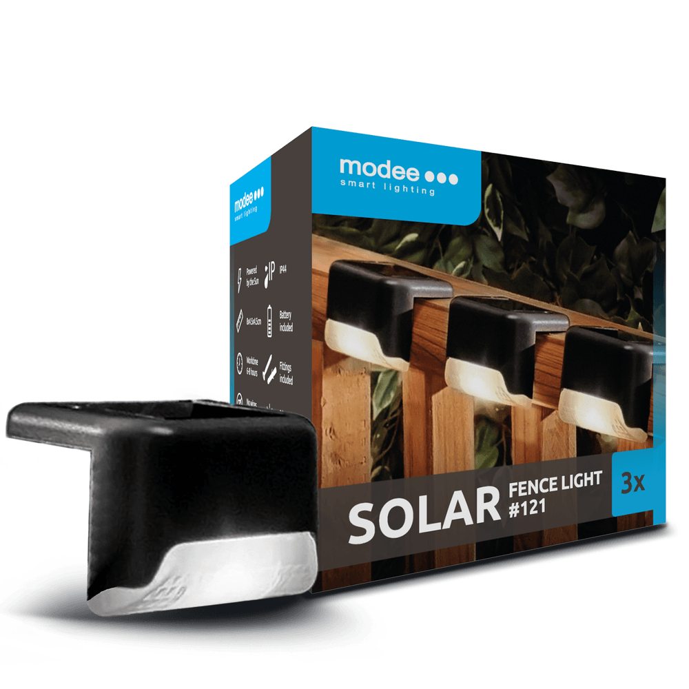 Modee Solar Zaun Leuchte LED 45x80x45mm Kunststoff schwarz 3000K IP44 1,2V Batterie 3er Pack