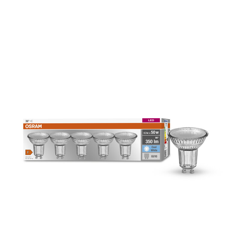 Osram / Ledvance LED Base Spot PAR16 36° 4,3-50W/840 kaltweiß 350lm GU10 220-240V 5er Pack