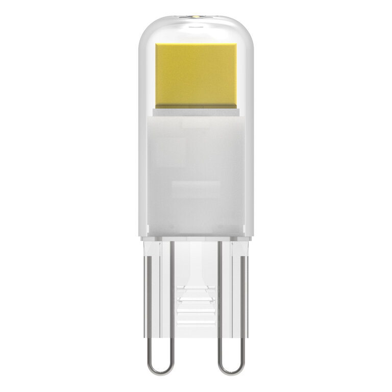Eine G9-LED ist eine kleine, moderne Glühbirne mit einem G9-Sockel mit einer Länge von 9 mm zwischen den Stiften. Früher wurde dieser Sockel nur für Halogen-G9, sprich Hochvolt-Halogenlampen, verwendet, heute gibt es aber auch energiesparende LEDs.