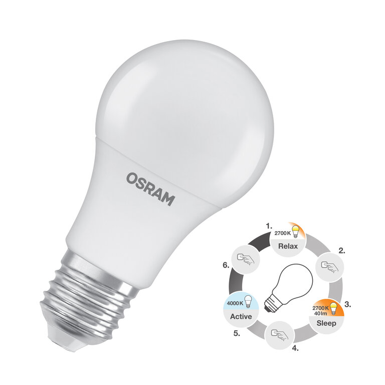 Osram / Ledvance LED Superstar Classic A matt 200° 3xclick Relax/Active/Sleep 8,8-60W/827…840 warmweiß…kaltweiß 806lm E27 220-240V