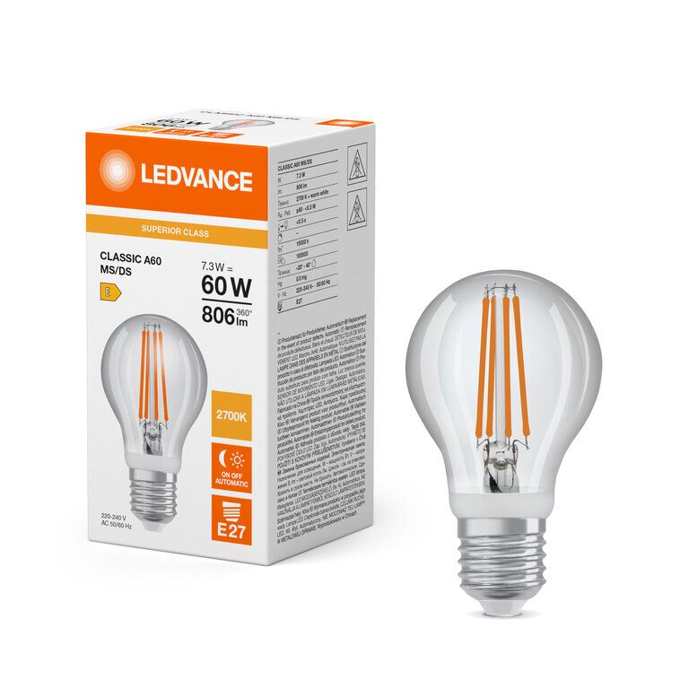 Osram / Ledvance LED Classic A klar 320° Superior MotionSensor 7,3-60W/827 warmweiß 806lm E27 220-240V