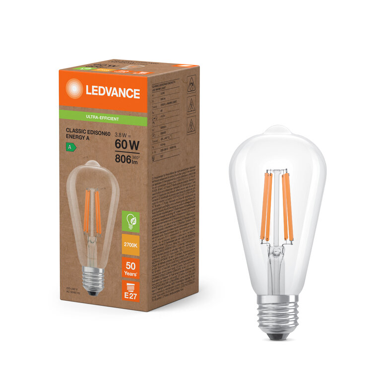 E27 LED-Leuchtmittel verbrauchen bis zu 80-90% weniger Energie als herkömmliche Glühlampen mit vergleichbarer Lichtleistung.
