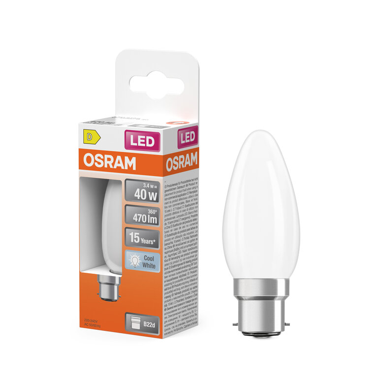 Osram / Ledvance LED Filament Star Kerze B matt 300° 3,4-40W/840 kaltweiß 470lm B22d 220-240V