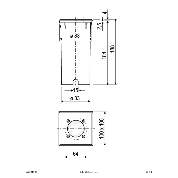 "EVN Bodeneinbauleuchte Edelstahl Optik starr viereckig 98x98x159mm 5W 3000K 450lm 41-80° 230V IP66"