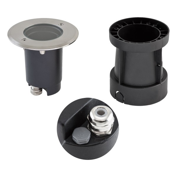 Produktinformationen "EVN Bodeneinbauleuchte mit Entlüftungsventil Edelstahl Optik schwenkbar rund 120x110mm 230V IP67"