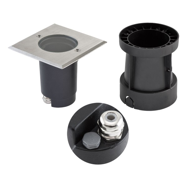 Mit dieser Edelstahl Optiken Bodeneinbauleuchte von EVN gelingt Ihnen die perfekte Ausleuchtung Ihrer Räume. Die schwenkbare und viereckige Bodeneinbauleuchte kommt mit einer Nennspannung von 230 V. Durch die 1x mit Fassung GU10 Fassung lässt sich die Leuchten problemlos anbringen.