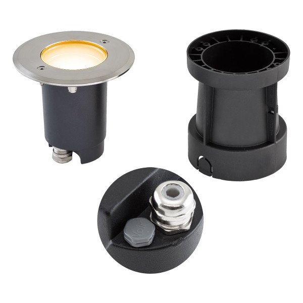 EVN LED Bodeneinbauleuchte mit Entlüftungsventil Edelstahl Optik schwenkbar rund 120x110mm 5W 3000K 450lm 21-40° 230V IP67