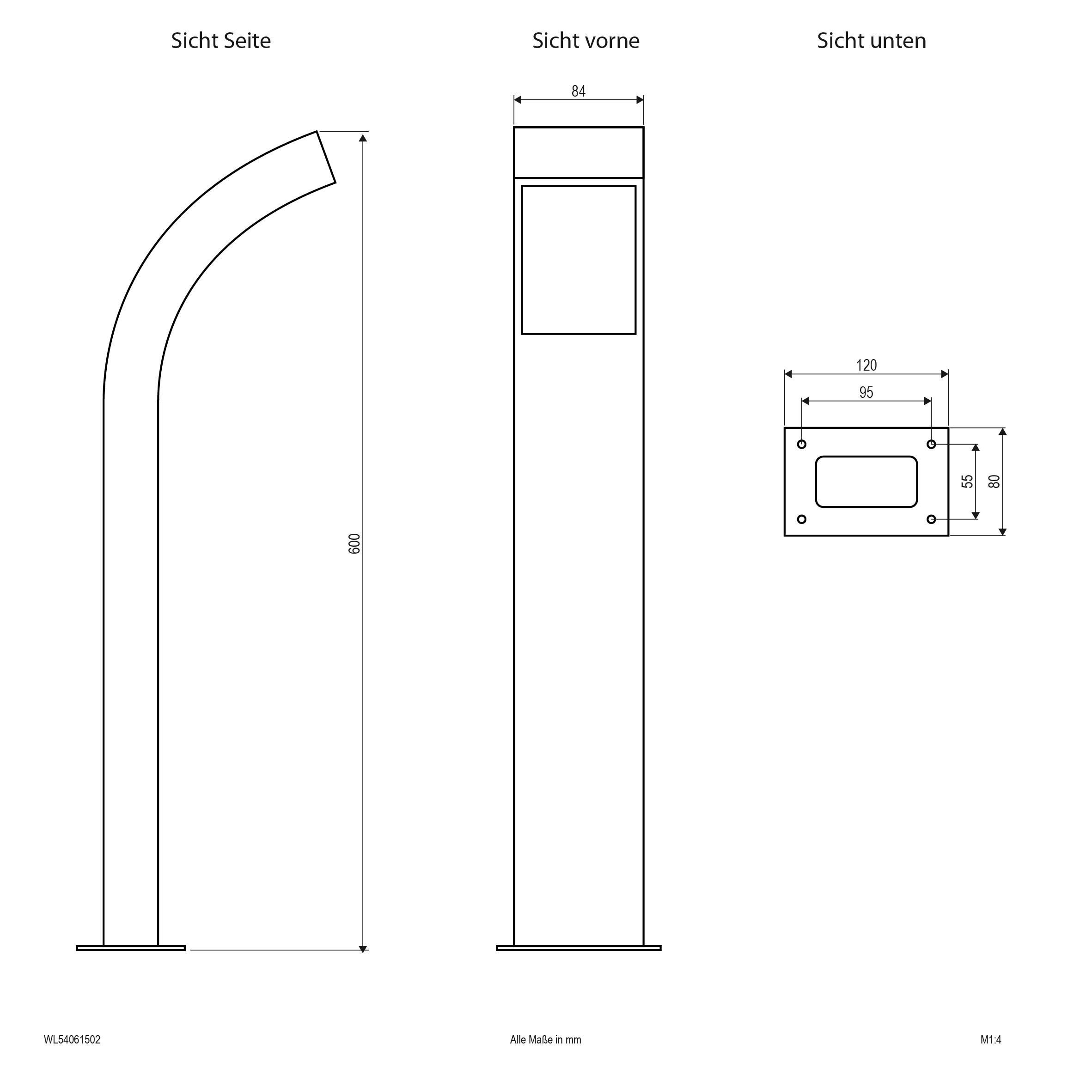 EVN Pollerleuchte anthrazit rechteckig 120x190x600mm 4,5W 3000K 310lm >80° 220-240V IP54