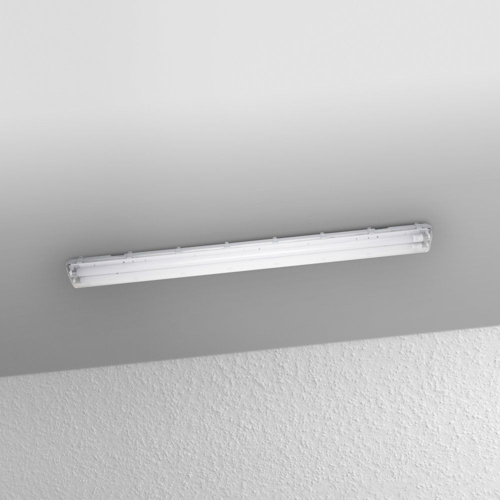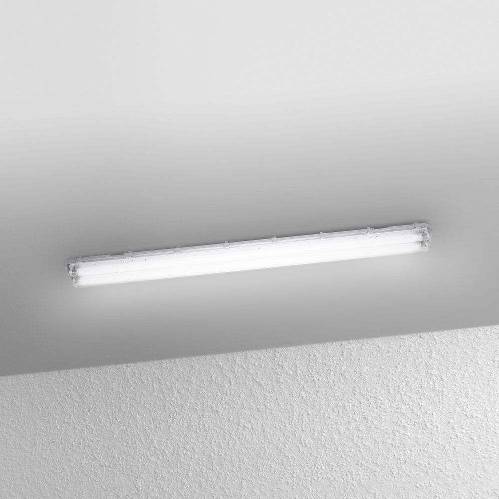 - Freitextfeld 1: <b>Produktvorteile</b><br> - Bis zu 65 % Energieersparnis verglichen mit Leuchten, die T8-Leuchtstofflampen am KVG nutzen<br> - Einfache Installation durch optimierten Platz für Montageklammern und einfach zu öffnendes Fach<br> - Einfacher Lampenwechsel<br> - Extrem bruchfeste SubstiTUBE Star PC LED-Röhre enthalten<br> - Gute und gleichmäßige Ausleuchtung<br><br> <b>Anwendungsgebiete</b><br> - Keller, Garagen, Lagerhallen<br> - Nur für Innenraumbeleuchtung<br><br> <b>Produkteigenschaften</b><br> - Feuchtraumleuchte mit LED-Röhre für den Netzspannungsbetrieb<br> - Haltbare und energiesparende LED-Leuchte<br> - Staubdicht und geschützt gegen Strahlwasser (IP65)<br> - Quecksilberfrei und RoHS-konform<br> - M20 Kabelverschraubung für 8-12 mm Kabel<br> - Nicht dimmbar