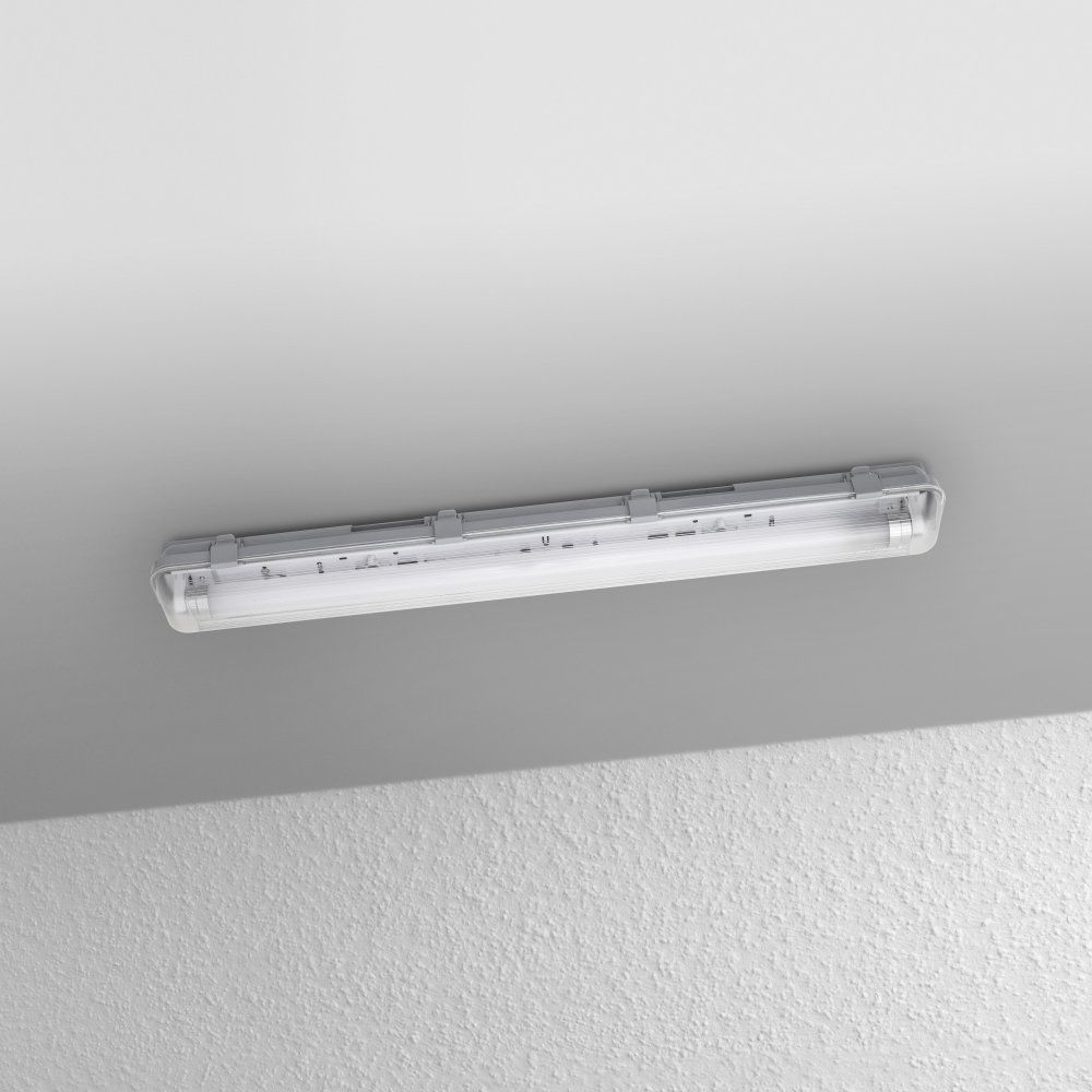 - Freitextfeld 1: <b>Produktvorteile</b><br> - Bis zu 65 % Energieersparnis verglichen mit Leuchten, die T8-Leuchtstofflampen am KVG nutzen<br> - Einfache Installation durch optimierten Platz für Montageklammern und einfach zu öffnendes Fach<br> - Einfacher Lampenwechsel<br> - Extrem bruchfeste SubstiTUBE Star PC LED-Röhre enthalten<br> - Gute und gleichmäßige Ausleuchtung<br><br> <b>Anwendungsgebiete</b><br> - Keller, Garagen, Lagerhallen<br> - Nur für Innenraumbeleuchtung<br><br> <b>Produkteigenschaften</b><br> - Feuchtraumleuchte mit LED-Röhre für den Netzspannungsbetrieb<br> - Haltbare und energiesparende LED-Leuchte<br> - Staubdicht und geschützt gegen Strahlwasser (IP65)<br> - Quecksilberfrei und RoHS-konform<br> - M20 Kabelverschraubung für 8-12 mm Kabel<br> - Nicht dimmbar<br><br> <b>Technische Ausstattung</b><br> - SubstiTUBE STAR PC EM wird mitgeliefert