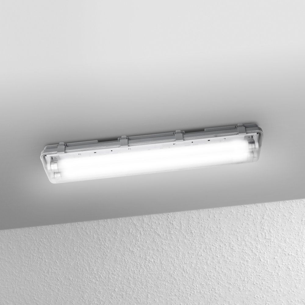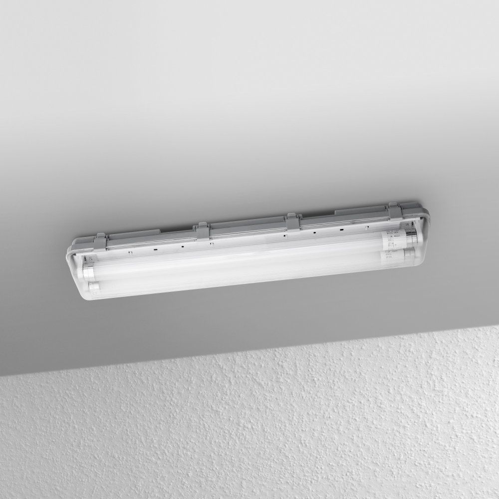 - Freitextfeld 1: <b>Produktvorteile</b><br> - Bis zu 65 % Energieersparnis verglichen mit Leuchten, die T8-Leuchtstofflampen am KVG nutzen<br> - Einfache Installation durch optimierten Platz für Montageklammern und einfach zu öffnendes Fach<br> - Einfacher Lampenwechsel<br> - Extrem bruchfeste SubstiTUBE Star PC LED-Röhre enthalten<br> - Gute und gleichmäßige Ausleuchtung<br><br> <b>Anwendungsgebiete</b><br> - Keller, Garagen, Lagerhallen<br> - Nur für Innenraumbeleuchtung<br><br> <b>Produkteigenschaften</b><br> - Feuchtraumleuchte mit LED-Röhre für den Netzspannungsbetrieb<br> - Haltbare und energiesparende LED-Leuchte<br> - Staubdicht und geschützt gegen Strahlwasser (IP65)<br> - Quecksilberfrei und RoHS-konform<br> - M20 Kabelverschraubung für 8-12 mm Kabel<br> - Nicht dimmbar<br><br> <b>Technische Ausstattung</b><br> - SubstiTUBE STAR PC EM wird mitgeliefert