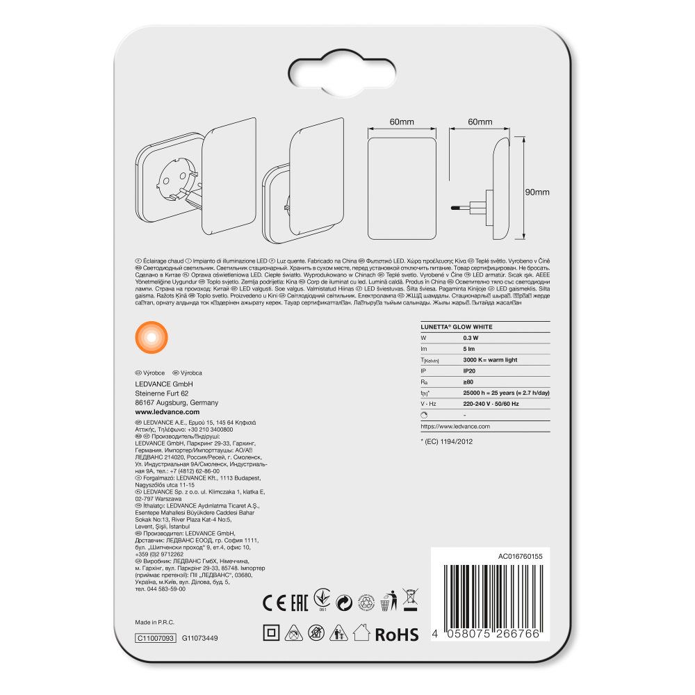 LEDVANCE LED Steckdosenleuchte Lunetta Glow 0,55W/830 5lm warmweiß nicht dimmbar weiß IP20