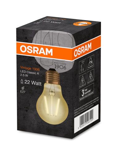 Osram LED Vintage 1906 Classic A Filament Gold 2,5-22W/824 E27 220lm klar warmweiß 300° nicht dimmbar