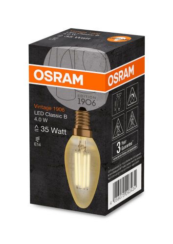 Osram LED Vintage 1906 Classic B Filament Gold 4,5-36W/825 E14 420lm klar warmweiß 300° nicht dimmbar