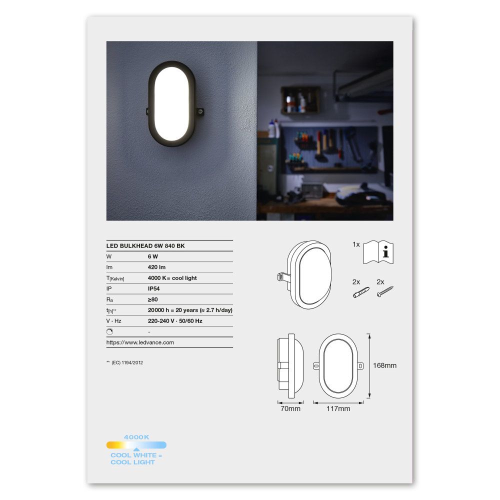 LEDVANCE LED Wandleuchte Bulkhead 6,1W/840 420lm kaltweiß nicht dimmbar schwarz IP54
