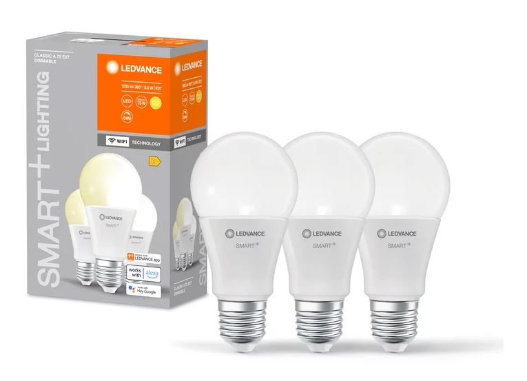 Ledvance LED WIFI Smart+ Classic A60 matt 220° 9,5-75W/827 warmweiß 1055lm E27 220-240V dimmbar 3er Pack