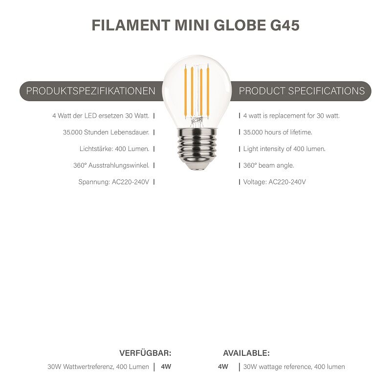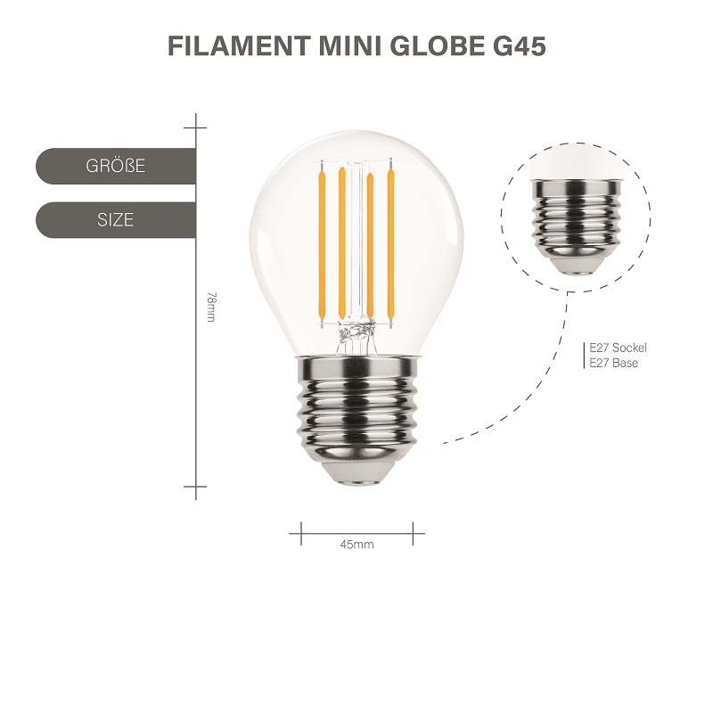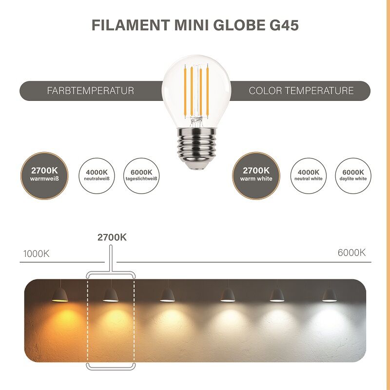 Modee LED Filament Globe Mini G45 4W/827 E27 warmweiß