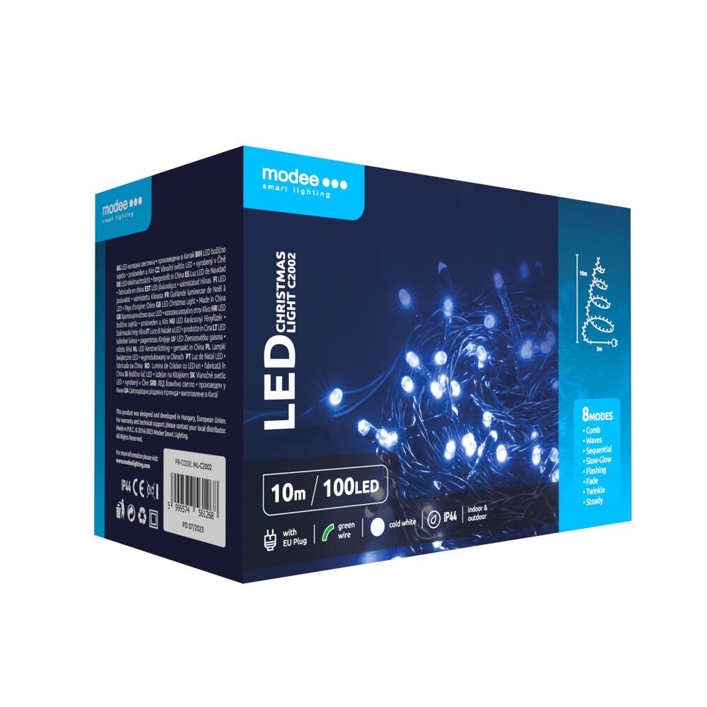 Modee Lichterkette 10m 100 LED Kunststoff grün 3,6W 6000K 360° IP44 220-240V Netzstecker 8 Funktionen